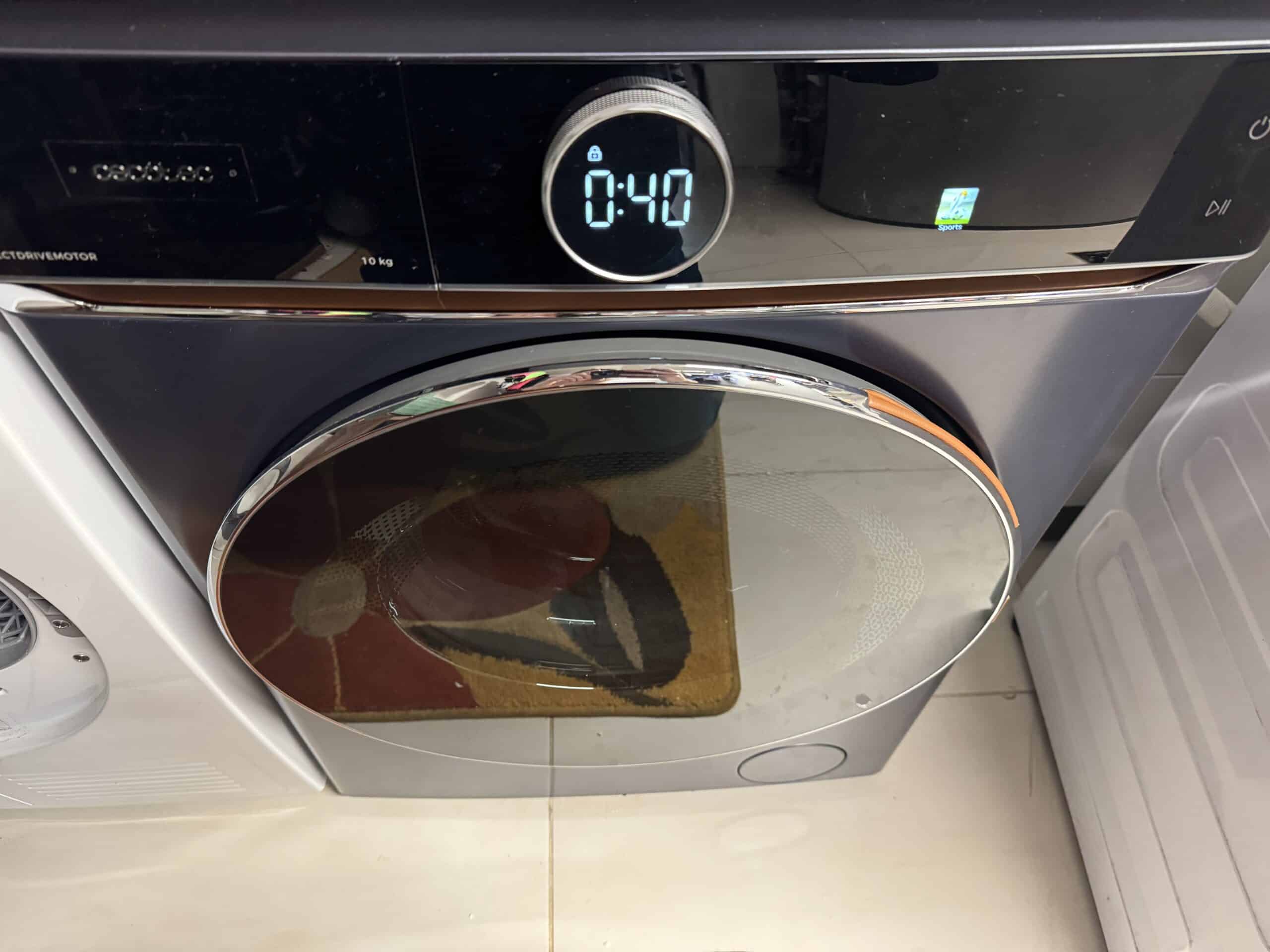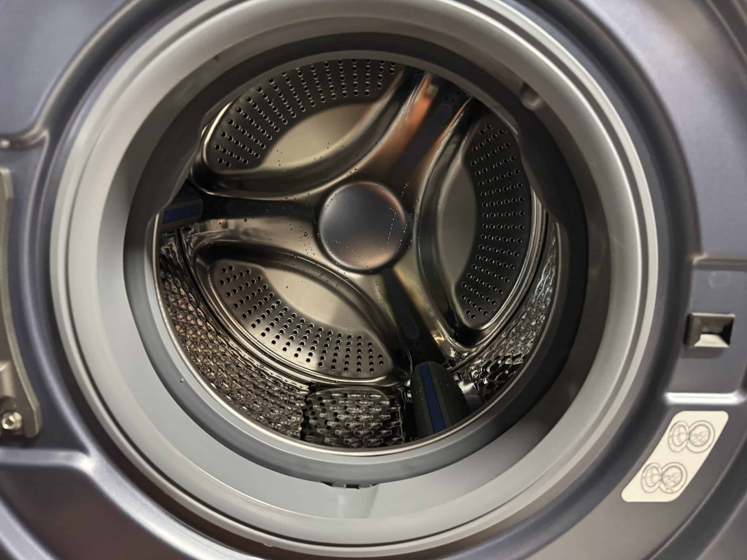 Der leise Betrieb dank Direct Drive war spürbar – selbst bei 1400 U/min blieb die Maschine stabil, ohne zu wackeln. Die XXL-Tür erleichterte das Beladen, und die Innenbeleuchtung half bei der Überprüfung auf vergessene Socken. Hier ist durch die Stop&Go-Funktion auch Nachwerfen von Wäsche möglich. Ein Segen bei Haushalten mit Kindern, wenn noch ein Stück Wäsche zum Nachwerfen gefunden wurde, während die Maschine bereits läuft.